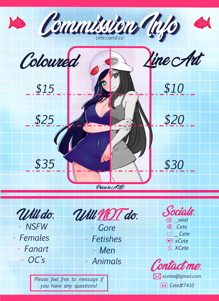 - I have the right to reject any order that I do not feel comfortable drawing for any reason.
